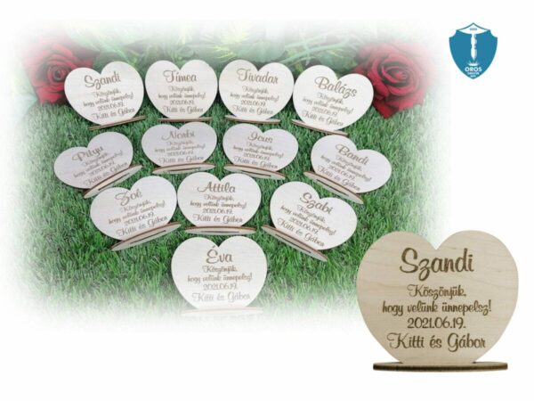 Minden szívre külön-külön a vendégek nevei kerülnek. Ehhez csak egy dokumban kell elküldened nekünk a névsort.